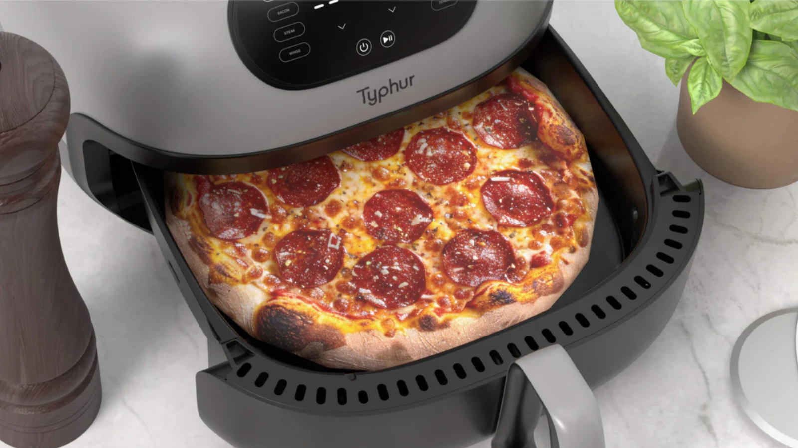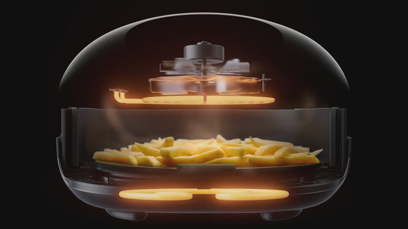 Geïnspireerd door professionele pizzaovens heeft Typhur de luchtstroom en circulatie van de airfryer opnieuw uitgevonden, waardoor de kooktijd met wel 30% wordt verkort. Dankzij dubbele verwarmingselementen (boven en onder) wordt je eten gelijkmatig gegaard, zonder dat je tussendoor veel hoeft te schudden of om te draaien. In combinatie met dubbele temperatuursensoren levert dit innovatieve systeem keer op keer heerlijke resultaten.